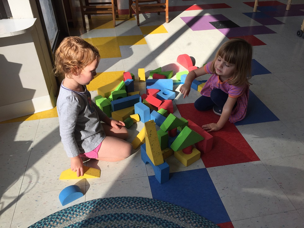 One of the highlights of our interest-led curriculum is the combinations that come out in the week’s projects. For example, interest in building materials and letters this week had the class creating shapes with different types of blocks and building sounds by matching letters.